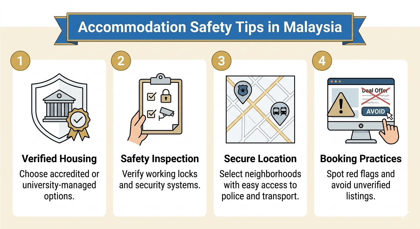 Finding a safe place to stay is one of the most important steps for a smooth student life in Malaysia. Here’s how to make sure your accommodation is secure and convenient: