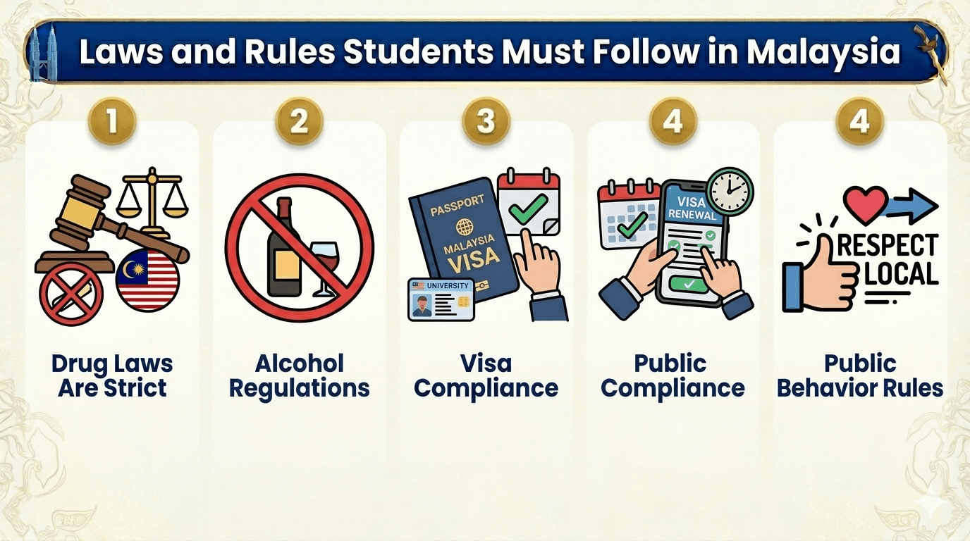 Following local laws is essential for a safe and trouble-free student life in Malaysia. Understanding the rules helps you enjoy your studies without unnecessary stress.