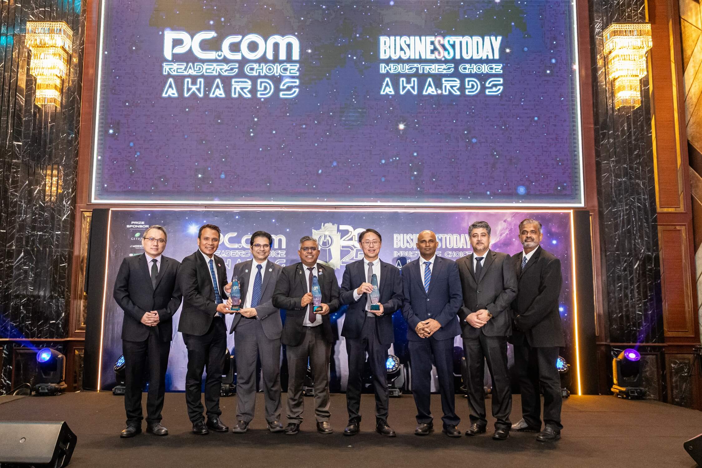 A group photo of the winners of the 25th PC.com Readers’ Choice Awards and the BusinessToday Industry Choice Awards at the conclusion of the Oscars-style evening.